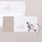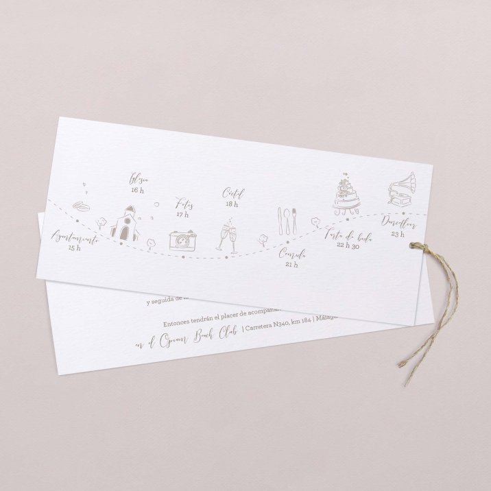 Esta invitación incluye dos tarjetas y una carpeta para incluir dentro las tarjetas. Para darle un toque más elegante, incluye un bonito lazo (a elegir y no incluido en el precio).