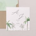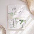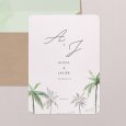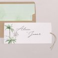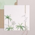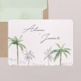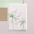 Con sus palmeras bellamente ilustradas, la invitación de boda Formentera ofrece una composición poética, promesa de una boda luminosa y soleada.