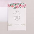 En la invitación Roses and Red, un hermoso ramo de flores en tonos rosados se coloca encima de los nombres de los novios. Elegentemente trazado en acuarela, esta obra anunciará con romanticismo su próxima unión.