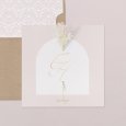 Invitación de boda en formato cuadrado y díptico, hechas con papel de alta calidad.