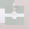 Delicadamente realzada con acabados dorados, la invitación de boda Eugénie y su suave tono verde celadón encantarán a sus invitados desde el momento en que abran su sobre. Una creación perfecta para anunciar una ceremonia chic.