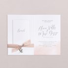 Invitación de boda de papel tipo acuarela, diseño vintage con motivos florales, un diseño muy fino y elegante.