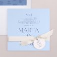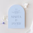 La invitación de boda Palazzo Azzurro captura de manera poética la esencia del sur. Los tonos azul cielo se integran de forma impecable con el encantador entorno de su ceremonia, elegantemente esbozado. Las iniciales de los novios, grabadas con una delicada tipografía, añaden un toque de distinción a este diseño. Es una elección ideal para anunciar una celebración estival en un lugar lleno de encanto.