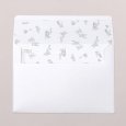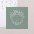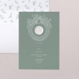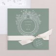 El imprescindible tema floral se reinventa con elegancia en la invitación de boda Gien. Una corona de flores delicadamente dibujada se inscribe en el corazón de un decorado verde grisáceo, revelando a sus invitados un tema chic o campestre.