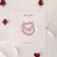 Un pastel sublimado por delicadas cintas se ilustra en la invitación de boda Candy. Un anuncio tiernamente dulce, perfecto para anunciar con elegancia vuestra boda que estáis a punto de celebrar.