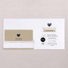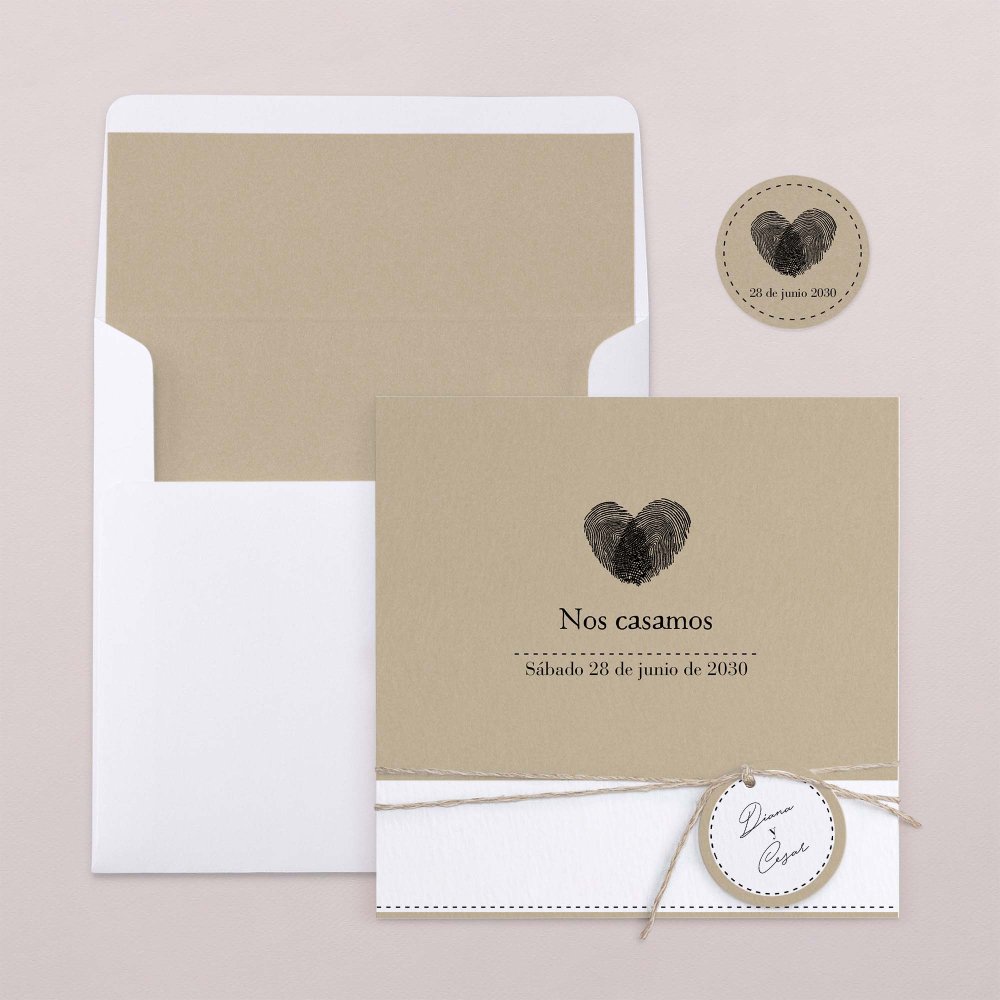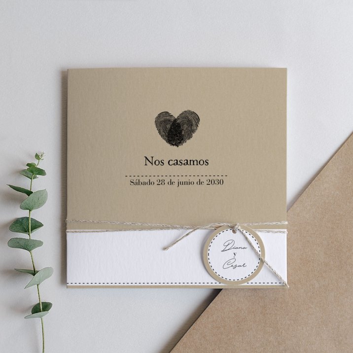 Este modelo incluye la tarjeta de invitación a la boda en formato díptico, una tarjeta para más información que quedará dentro de la invitación y una etiqueta para la fecha. Hay un agujero para incluir el lazo (a elegir y no incluido en el precio).