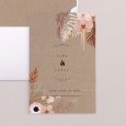 Este modelo incluye la tarjeta de invitación a la boda en formato díptico, una tarjeta para más información que quedará dentro de la invitación y una etiqueta para la fecha. Hay un agujero para incluir el lazo (a elegir y no incluido en el precio).