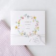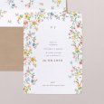 Delicadas flores silvestres de vivos colores se esbozan alrededor de vuestro anuncio en la invitación de boda Farandole. Una creación poética, perfecta para una unión celebrada en primavera o verano.