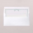 Esta invitación de boda está compuesta por una tarjeta alargada en forma de díptico y un marca páginas en el interior que quedará sujeto por unas hendiduras.