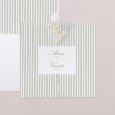 Delgadas rayas visten la invitación de boda Cambridge con una elegancia discreta. Un estilo sobrio y refinado, pensado para anunciar su unión con distinción. - Colores: verde, blanco - Tema: chic, minimalista