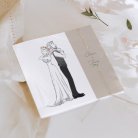 Invita a tus familiares y amigos con esta tarjeta con una divertida pareja dibujada, préparandose para su gran día. El modelo Lennon encantará a vuestros familiares y amigos.
