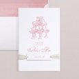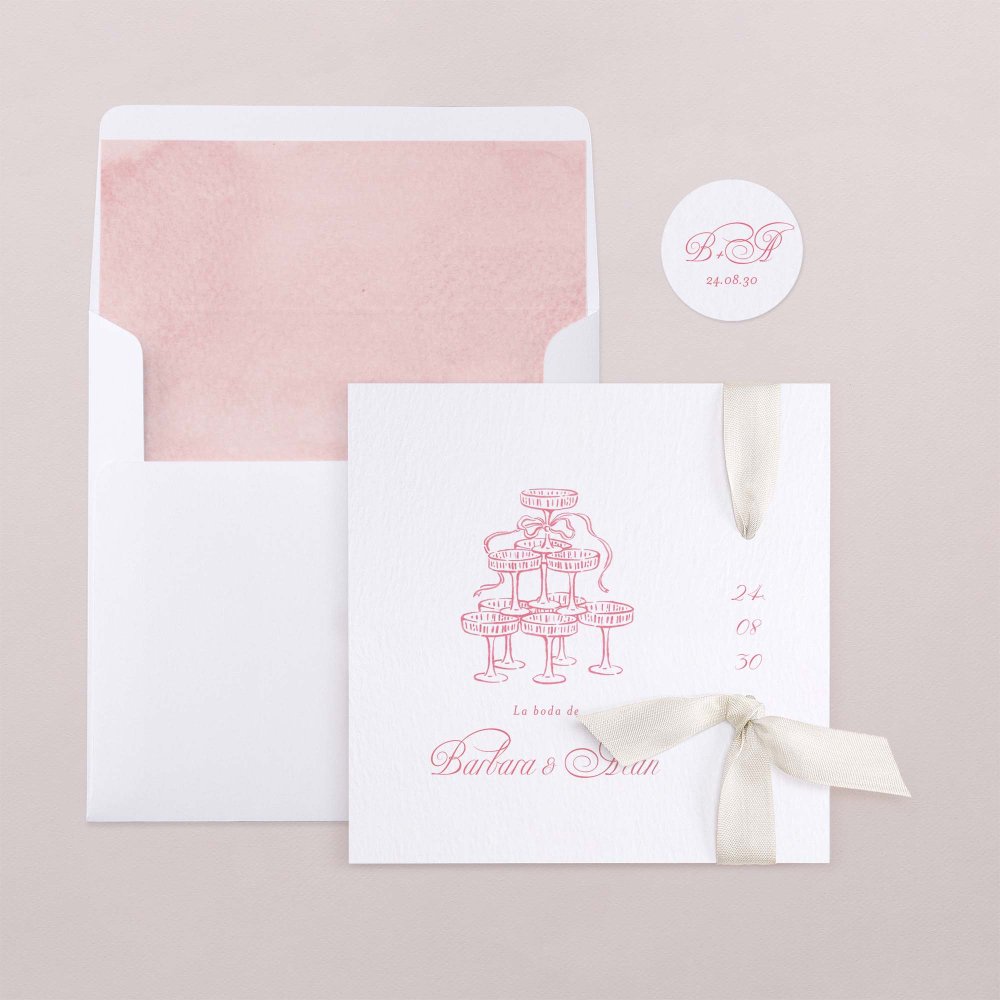 Este modelo incluye la invitación de boda en formato díptico cuadrado, en el interior un pequeño bolsillo donde incluir una segunda tarjeta para más información.