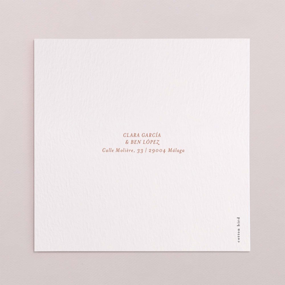 Este modelo incluye la invitación de boda en formato díptico cuadrado, en el interior un pequeño bolsillo donde incluir una segunda tarjeta para más información.