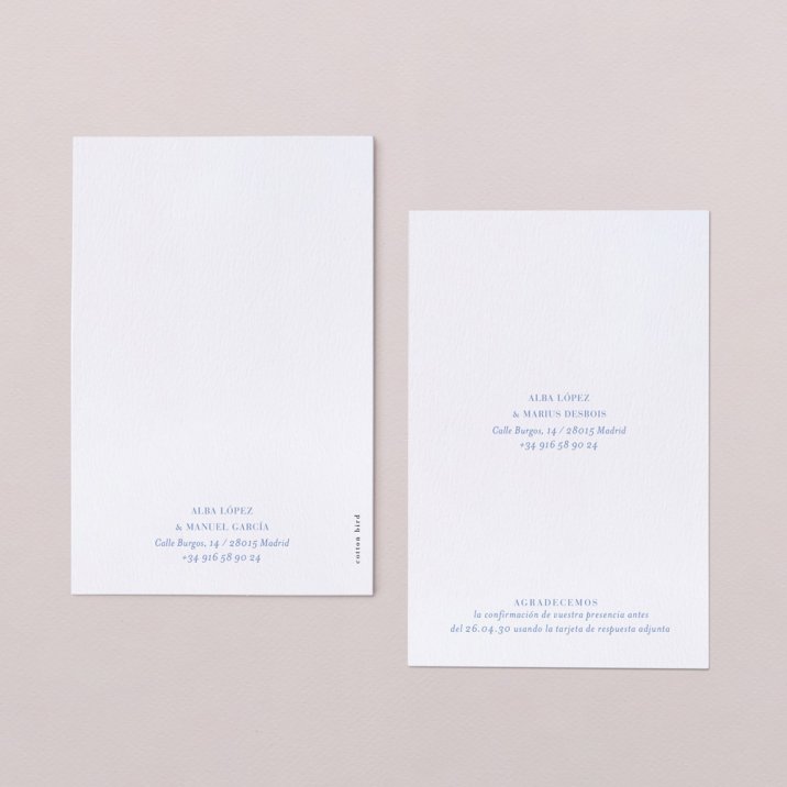 Invitación de boda en formato díptico, incluye una tarjeta extra.