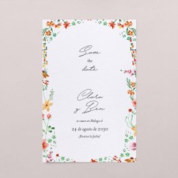 Sublimes acuarelas florales, iniciales de los novios escritas en caligrafía : esta invitación de boda llena de poesía será perfecta para los novios que sueñan con un día D lleno de flores, colores y alegría.