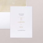 Esta invitación es una tarjeta con los lados rectos que podréis personalizar con los detalles de vuestra boda tanto en la cara como en el dorso.