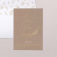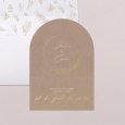 Caracterizada por su borde superior en forma de arco, esta elegante invitación puede personalizarse por ambas caras con los detalles de vuestra ceremonia feliz.