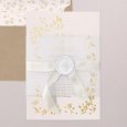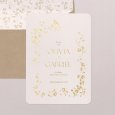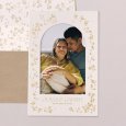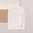 Caracterizada por su borde superior en forma de arco, esta elegante invitación puede personalizarse por ambas caras con los detalles de vuestra ceremonia feliz.
