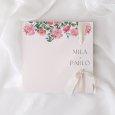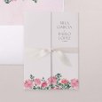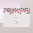 En la invitación Roses and Red, un hermoso ramo de flores en tonos rosados se coloca encima de los nombres de los novios. Elegentemente trazado en acuarela, esta obra anunciará con romanticismo su próxima unión.