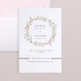En la invitación de boda Round Romance, una delicada corona de flores rosas en acuarela realza su feliz anuncio. Esta papelería, refinada y romántica, narrará con ternura tu próxima unión.