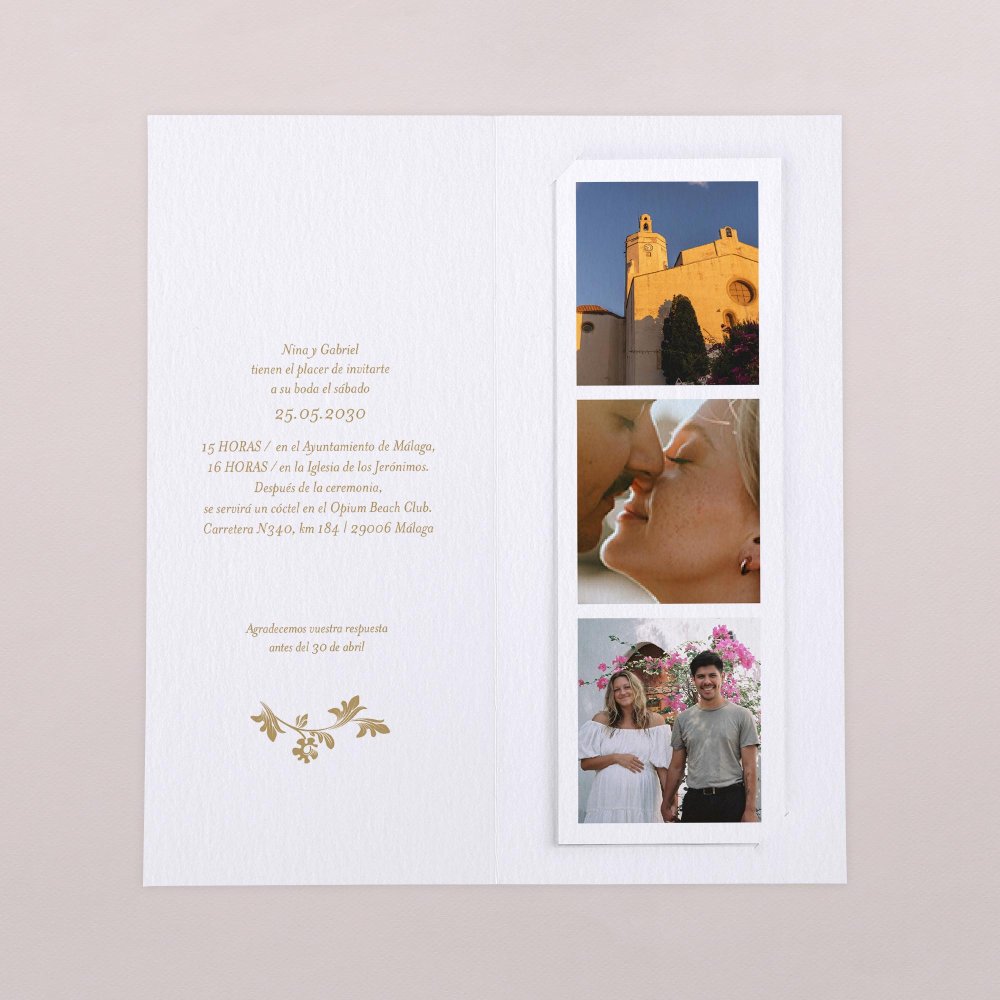 Al abrir esta original invitación en formato de marcapáginas, vuestros destinatarios tendrán el placer de descubrir un fotomatón de vosotros, colocado junto a su feliz anuncio de boda.