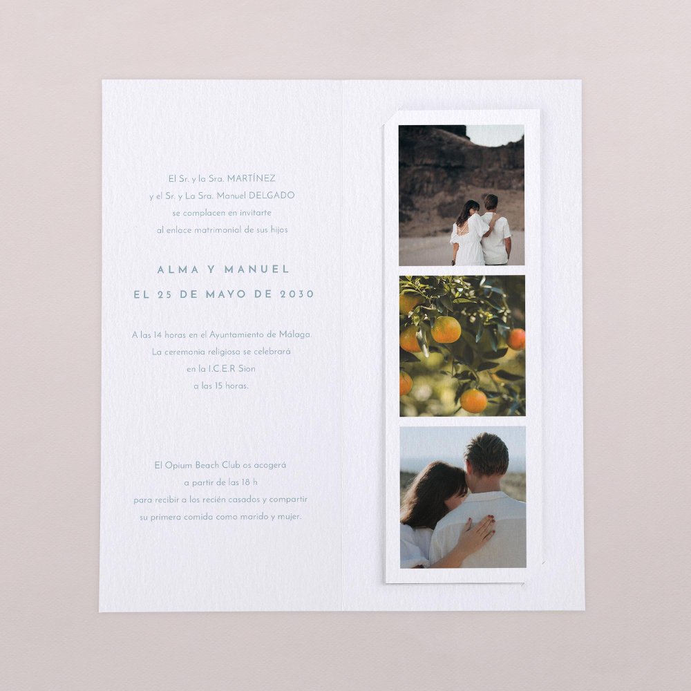 Al abrir esta original invitación en formato de marcapáginas, vuestros destinatarios tendrán el placer de descubrir un fotomatón de vosotros, colocado junto a su feliz anuncio de boda.