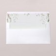 Delicados follajes y pequeños pájaros se ilustran en la invitación de boda Tonnelle: un cuadro sutil adornado con vuestras iniciales caligrafiadas, perfecto para anunciar una boda de tema campestre.