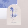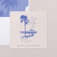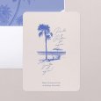 Un decorado de orilla de mar esbozado en tonos azulados, tus nombres elegantemente caligrafiados: la invitación de boda Archipiélago será perfecta para anunciar tu boda junto al mar.