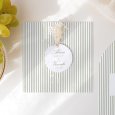 Delgadas rayas visten la invitación de boda Cambridge con una elegancia discreta. Un estilo sobrio y refinado, pensado para anunciar su unión con distinción. - Colores: verde, blanco - Tema: chic, minimalista