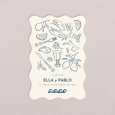 Caracterizado por sus bordes ondulados, esta invitación de boda en formato vertical se personaliza por ambas caras con los detalles de tu gran día.