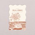 Caracterizado por sus bordes ondulados, esta invitación de boda en formato vertical se personaliza por ambas caras con los detalles de tu gran día.