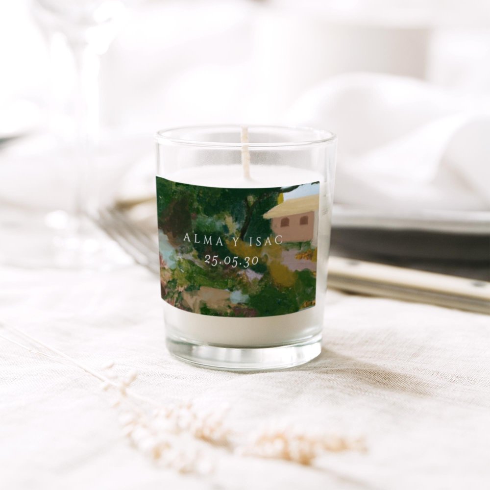 Haced brillar vuestra unión con esta vela personalizada que vuestros invitados podrán guardar como recuerdo.