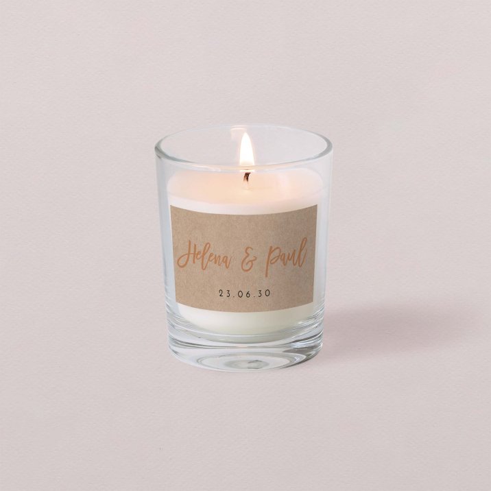 Haced brillar vuestra unión con esta vela personalizada que vuestros invitados podrán guardar como recuerdo.