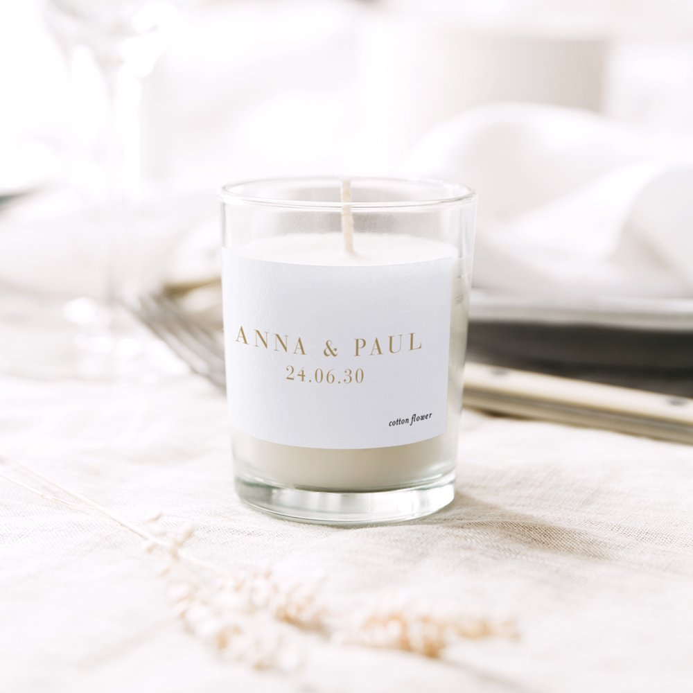 Haced brillar vuestra unión con esta vela personalizada que vuestros invitados podrán guardar como recuerdo.