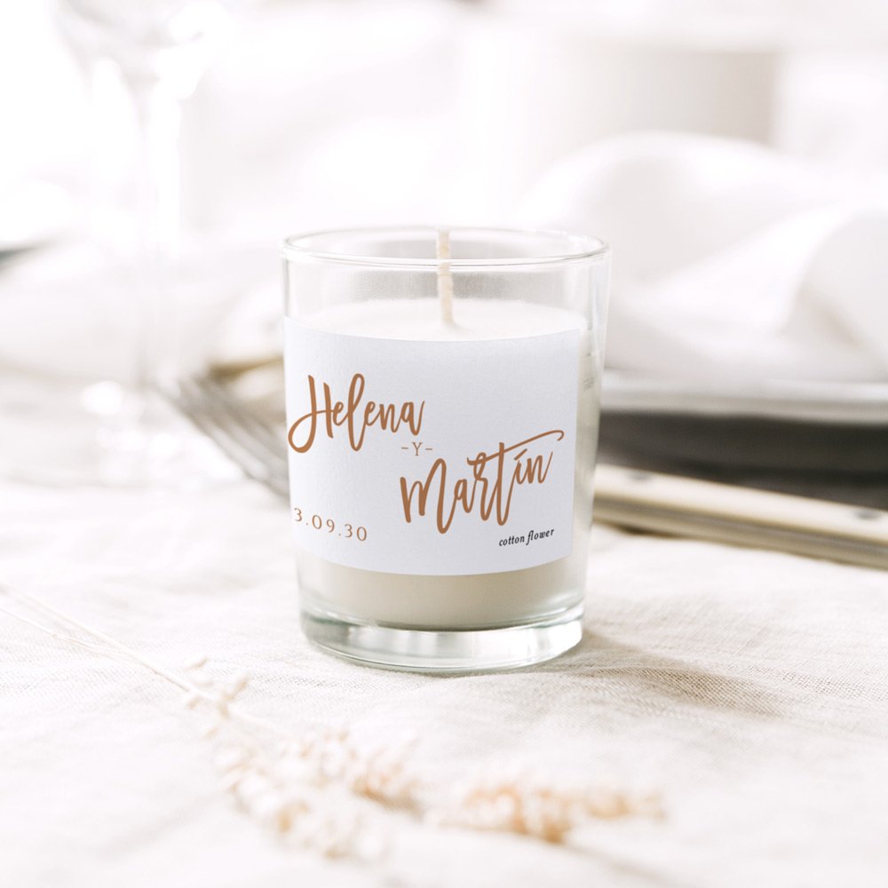 Haced brillar vuestra unión con esta vela personalizada que vuestros invitados podrán guardar como recuerdo.