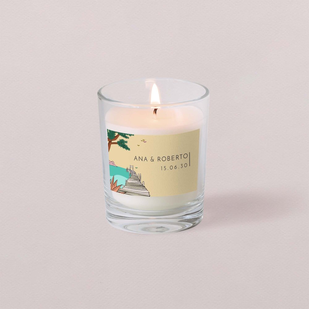 Haced brillar vuestra unión con esta vela personalizada que vuestros invitados podrán guardar como recuerdo.