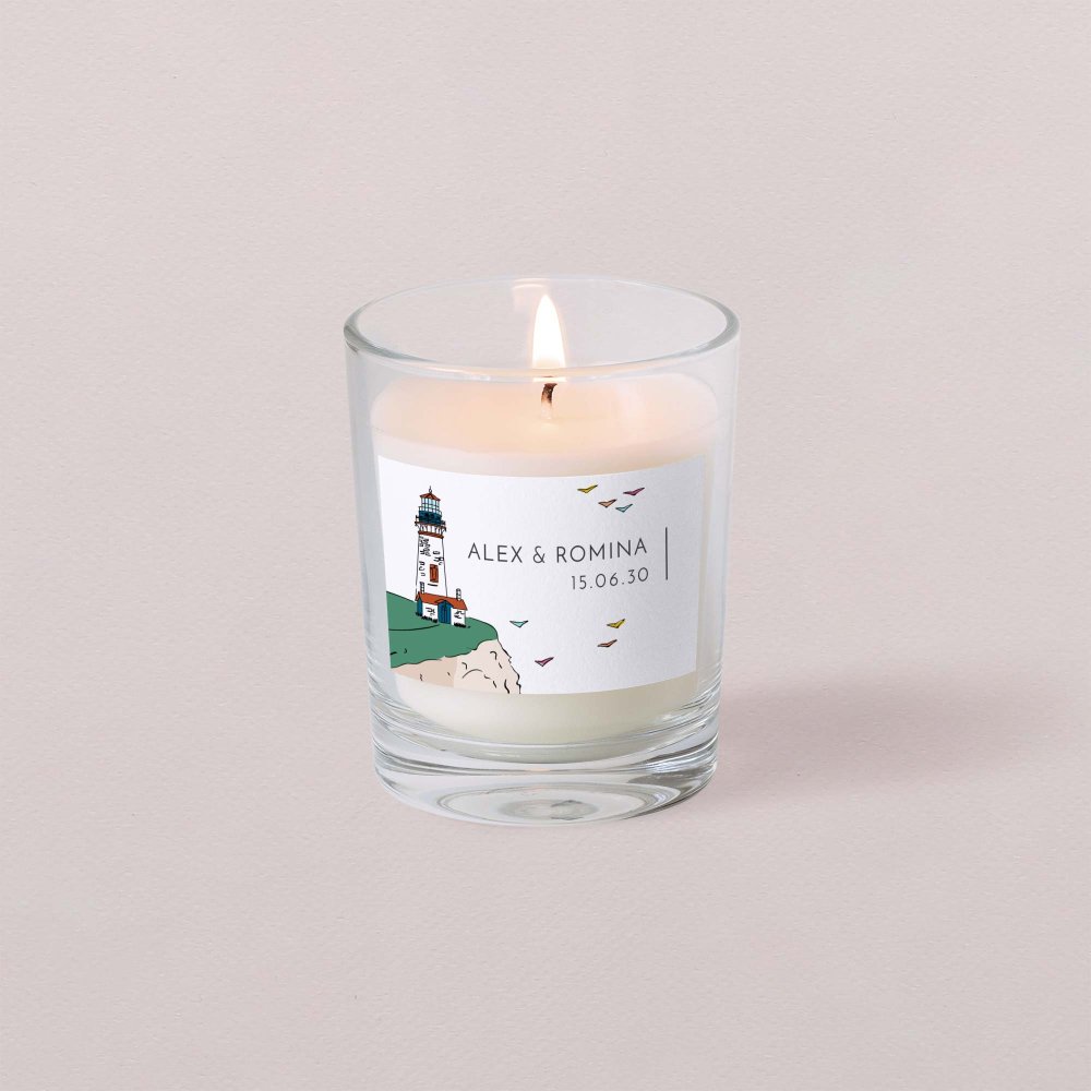 Haced brillar vuestra unión con esta vela personalizada que vuestros invitados podrán guardar como recuerdo.