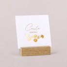 Para que tus invitados encuentren su sitio, nuestros carnets de mesa se pueden poner en las mesas del banquete. Van decorados por los dos lados.