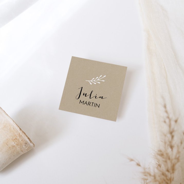 Para que tus invitados encuentren su sitio, nuestros carnets de mesa se pueden poner en las mesas del banquete. Van decorados por los dos lados.