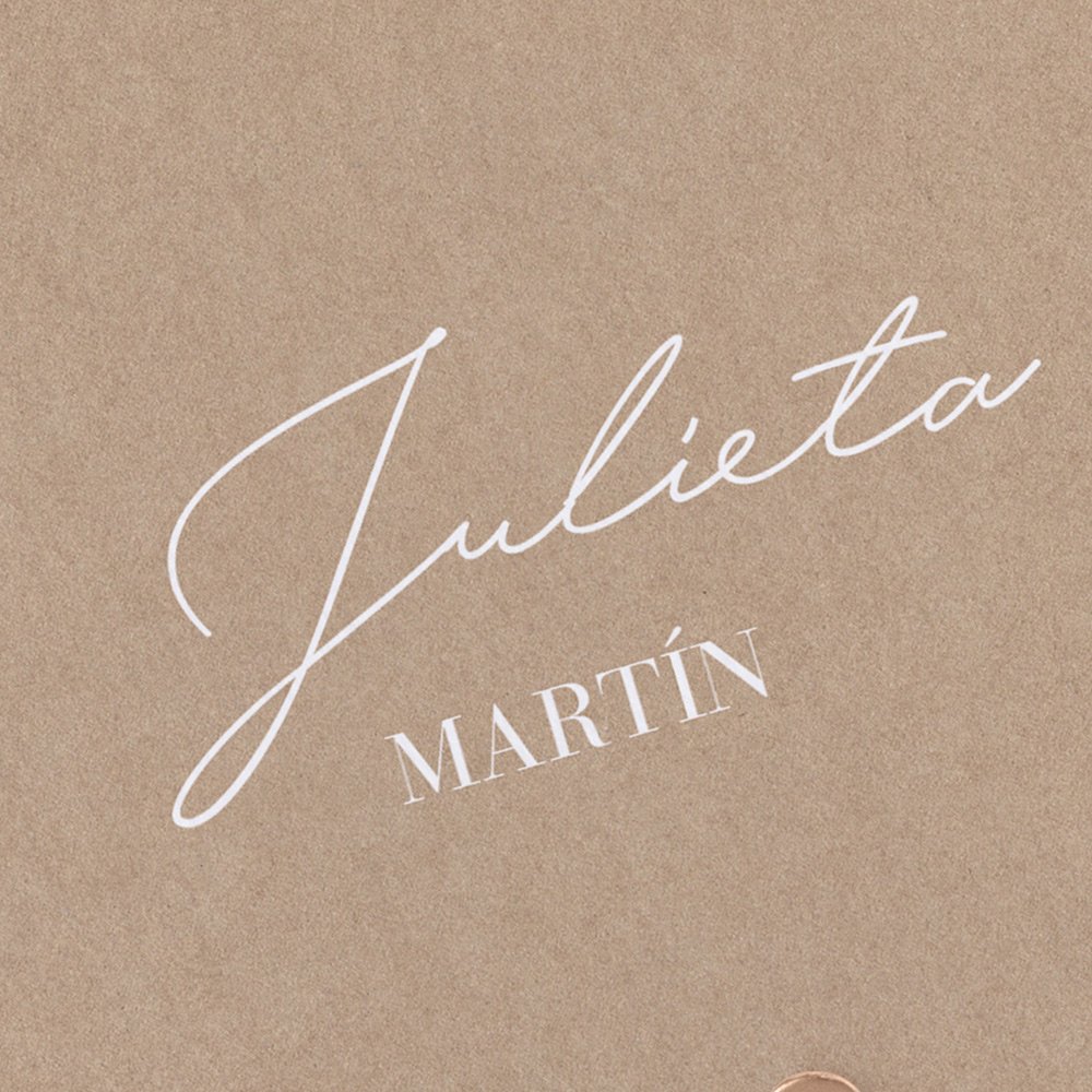 Para que tus invitados encuentren su sitio, nuestros carnets de mesa se pueden poner en las mesas del banquete. Van decorados por los dos lados.
