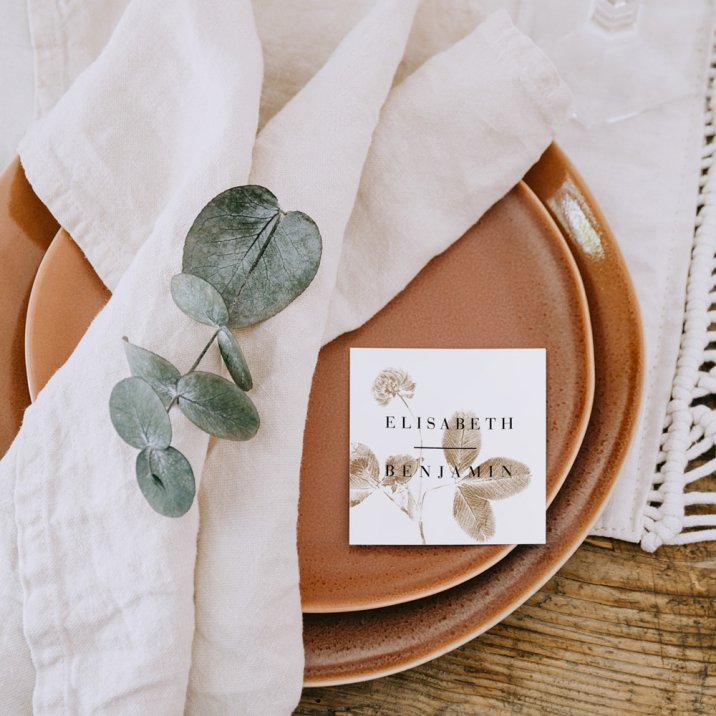 Para que tus invitados encuentren su sitio, nuestros carnets de mesa se pueden poner en las mesas del banquete. Van decorados por los dos lados.