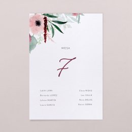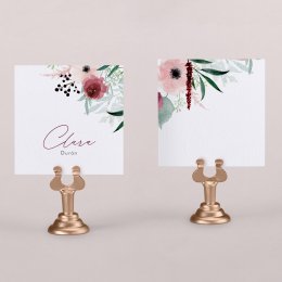 Para que tus invitados encuentren su sitio, nuestros carnets de mesa se pueden poner en las mesas del banquete. Van decorados por los dos lados.