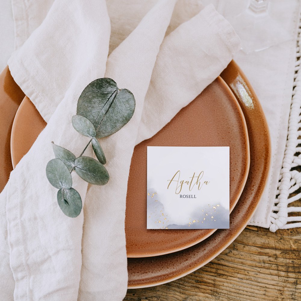 Para que tus invitados encuentren su sitio, nuestros carnets de mesa se pueden poner en las mesas del banquete. Van decorados por los dos lados.