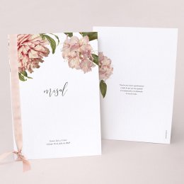 Para que tus invitados encuentren su sitio, nuestros carnets de mesa se pueden poner en las mesas del banquete. Van decorados por los dos lados.
