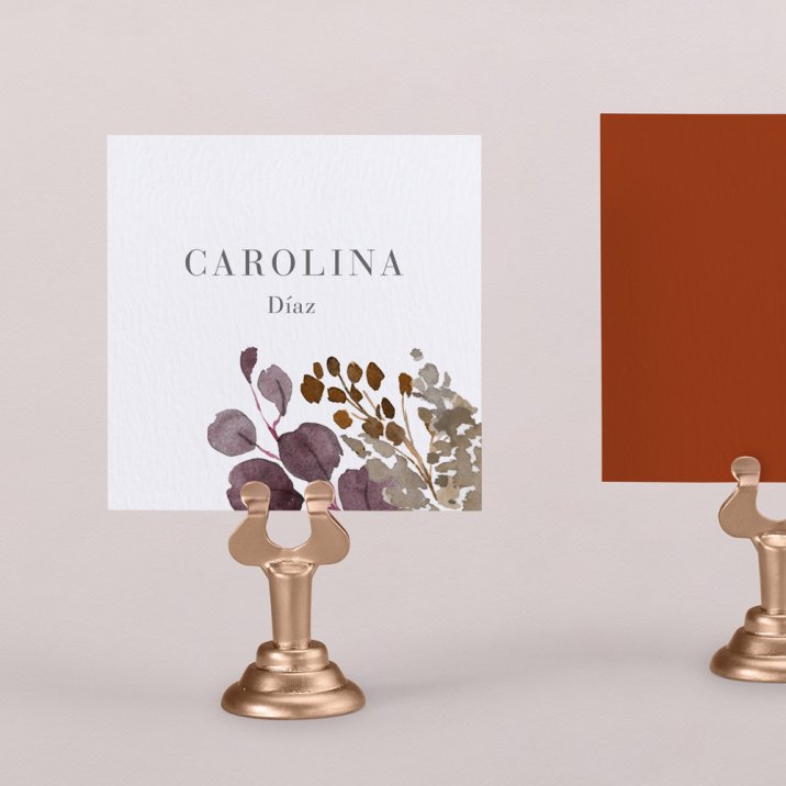 Para que tus invitados encuentren su sitio, nuestros carnets de mesa se pueden poner en las mesas del banquete. Van decorados por los dos lados.
