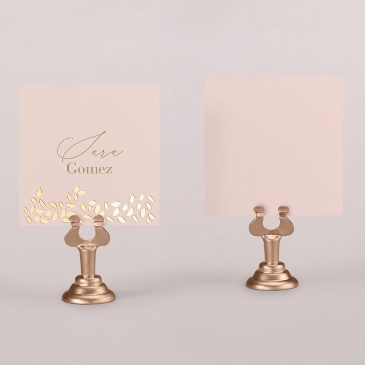 Para que tus invitados encuentren su sitio, nuestros carnets de mesa se pueden poner en las mesas del banquete. Van decorados por los dos lados.