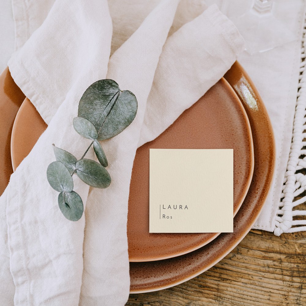 Para que tus invitados encuentren su sitio, nuestros carnets de mesa se pueden poner en las mesas del banquete. Van decorados por los dos lados.