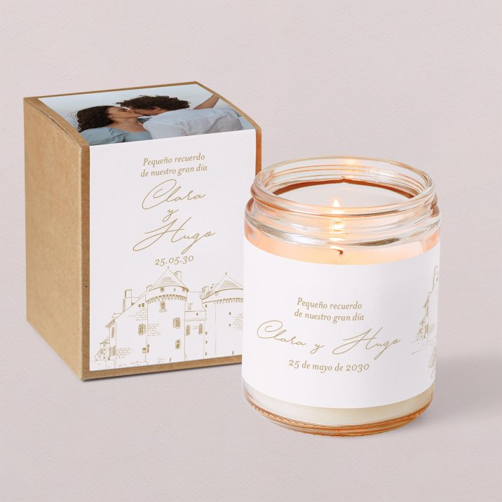 Haced brillar vuestra unión con este detalle para vuestros invitados que podrán guardar como recuerdo esta vela personalizada. Con su delicado perfume con un toque frutal, este regalo para vuestros invitados les permitirá recordar vuestro maravilloso día.