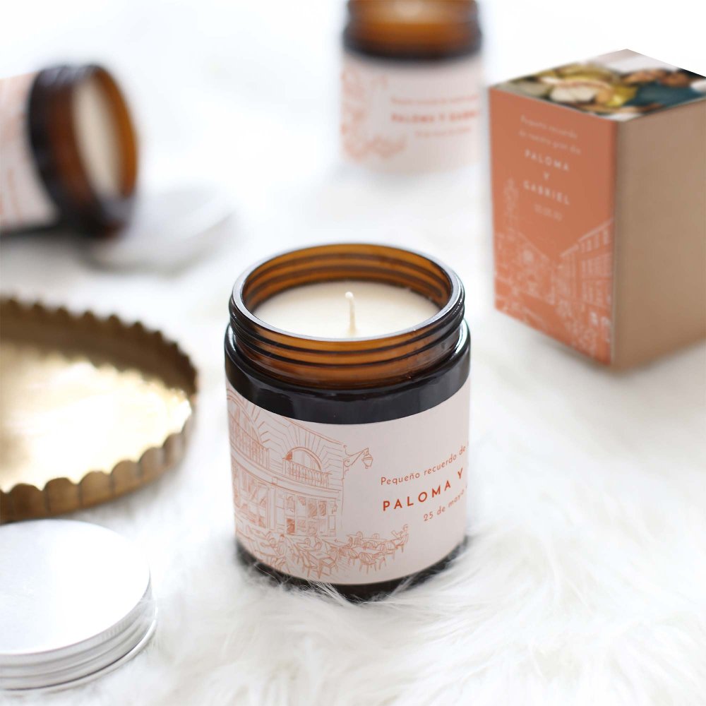 Haced brillar vuestra unión con este detalle para vuestros invitados que podrán guardar como recuerdo esta vela personalizada.