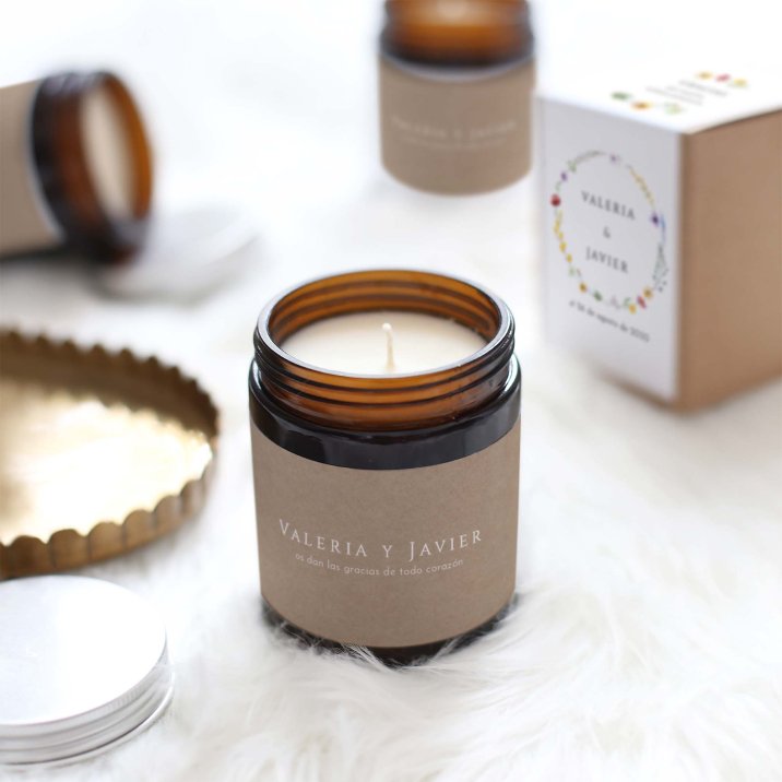 Haced brillar vuestra unión con este detalle para vuestros invitados que podrán guardar como recuerdo esta vela personalizada. Con su delicado perfume con un toque frutal, este regalo para vuestros invitados les permitirá recordar vuestro maravilloso día.